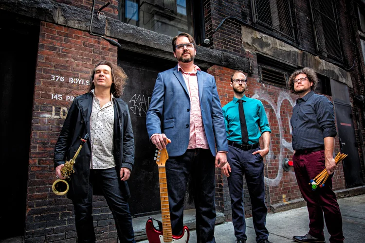 Praised as “experimental and ethereal” (T&C Media) and a “welcome addition to the new music scene,” (Boston Musical Intelligencer) the Hinge Quartet is comprised of Philipp Stäudlin (saxophones), Dan VanHassel (electric guitar), Matt Sharrock (percussion), and Keith Kirchoff (piano). Lying somewhere between a chamber ensemble and an avant-garde rock band, the Hinge Quartet combines cutting-edge contemporary classical and experimental music with seamless multimedia integration and the innovative re-imagining of rock and pop songs.